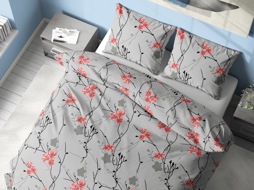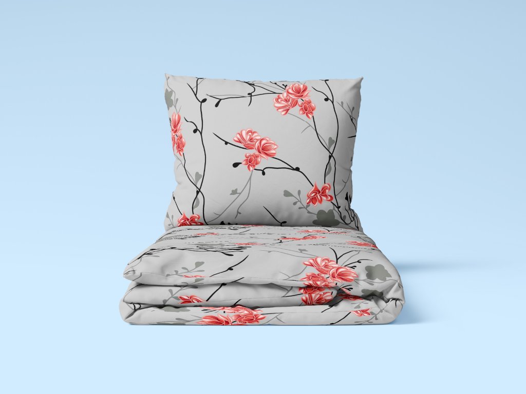 Kvalitní bavlněné povlečení na jednolůžko s jemným a elegantním vzorem sakury v červené a černé barvě na šedém pozadí. Povlečení je vyrobeno ze 100% bavlny. Je velmi příjemné na dotek, poskytuje maximální pohodlí a výborně absorbuje vlhkost, což oceníte především v letních měsících. Vysoká kvalita zpracování zajišťuje stálost barev a rozměrů. Toto povlečení s jemným květinovým vzorem standardní velikosti na jednolůžko obsahuje 1x povlak na polštář o velikosti 70x90 cm a 1x povlak na velkou postel o velikosti 140x200 cm. Klasické zapínání povlečení na knoflíky.