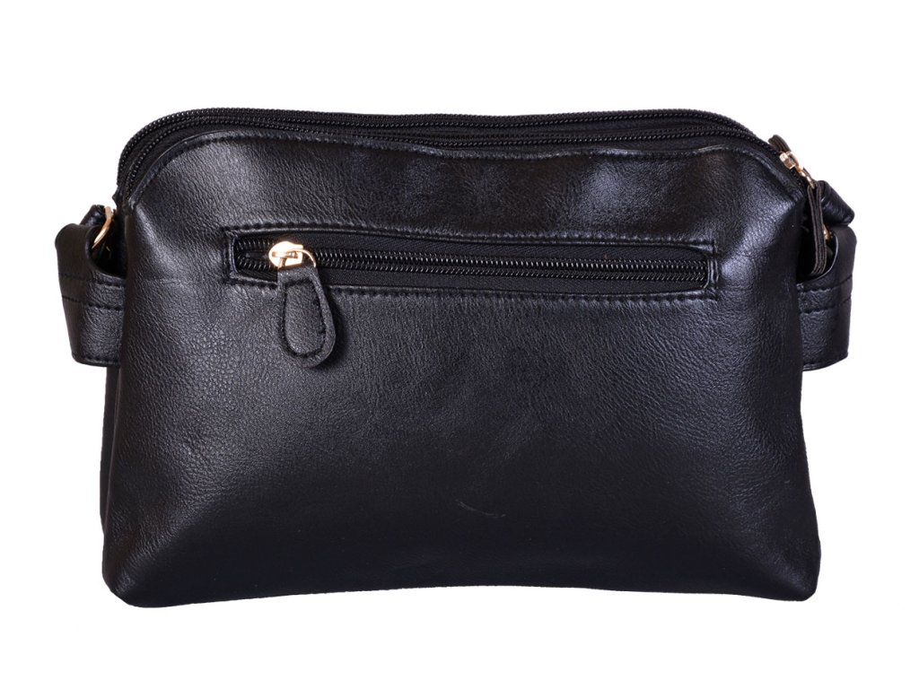 Dámská kabelka crossbody je vyrobena z vysoce kvalitní eko kůže. Vnitřní část tvoří podšívka z polyesterové vlny. Tato stylová černá kabelka je praktická. Vejde se do ní to nejdůležitější (mobilní telefon, peněženka, klíče) plus nějaké ty drobnosti. Má dva hlavní úložné prostory se zapínáním na zip, vybavené třemi vnitřními kapsami, z nichž jedna je se zipem. Na zadní straně je malá kapsa uzavřená pomocí zipu. Zdobí ji zlaté kování, které dodá kabelce osobitý vzhled. Nosí se pohodlně díky nastavitelnému ramennímu popruhu. Tuto kabelku si zamilujete a stane se Vaším každodenním společníkem ve dnech, kdy postačí mít sebou pouze ty nejdůležitější věci. Je vhodná na cesty do práce, do města nebo na výlety. Rozměry tašky jsou 18 x 25 x 4 cm.