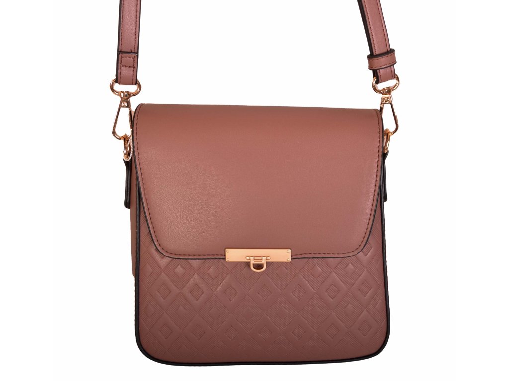 Dámská elegantní crossbody kabelka vyrobená z kvalitní ekologické kůže a navržena podle nejnovějších módních trendů, která váš outfit krásně doplní. Má zlaté kování a pevný magnetický uzávěr. Uvnitř kabelky jsou tři menší kapsy a jedna větší na mobil, klíče či jiné drobnosti. Součástí kabelky je pásek, nastavitelný do délky 110 cm