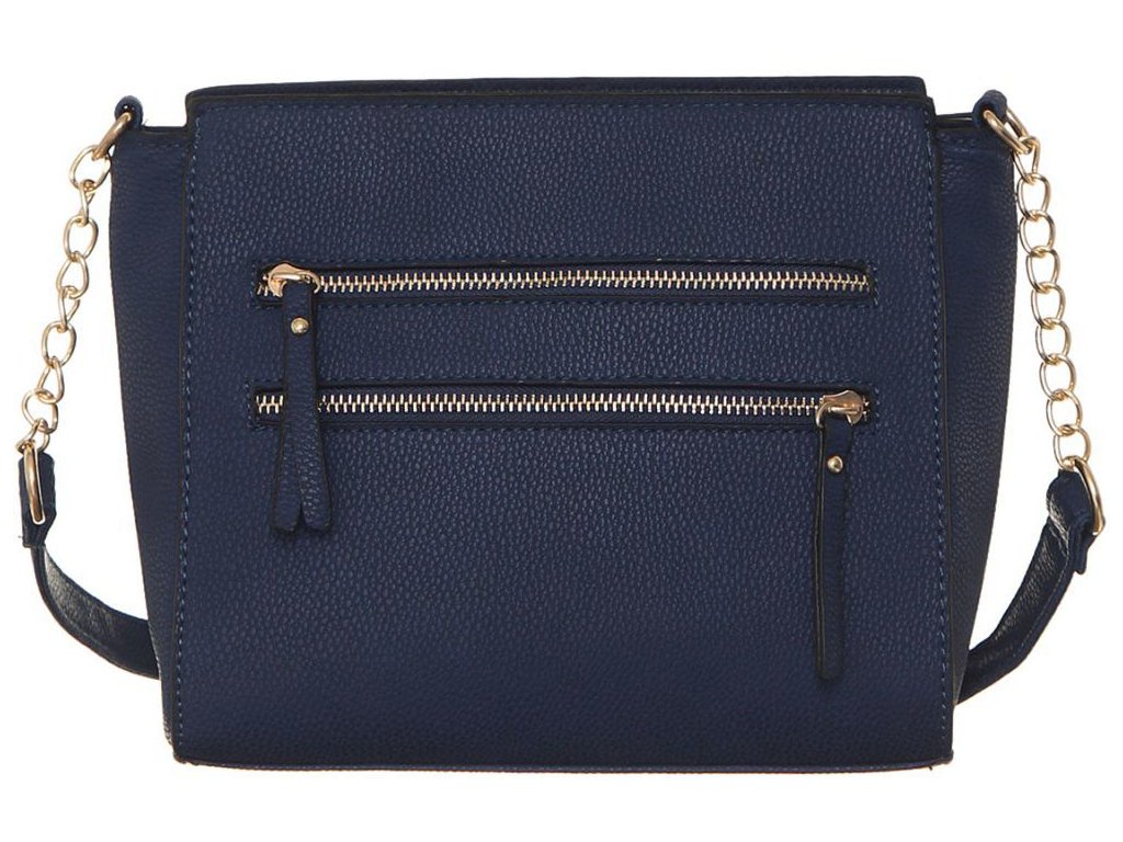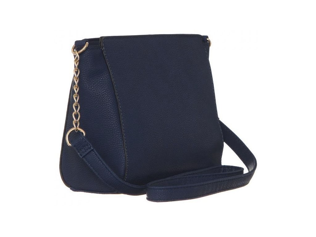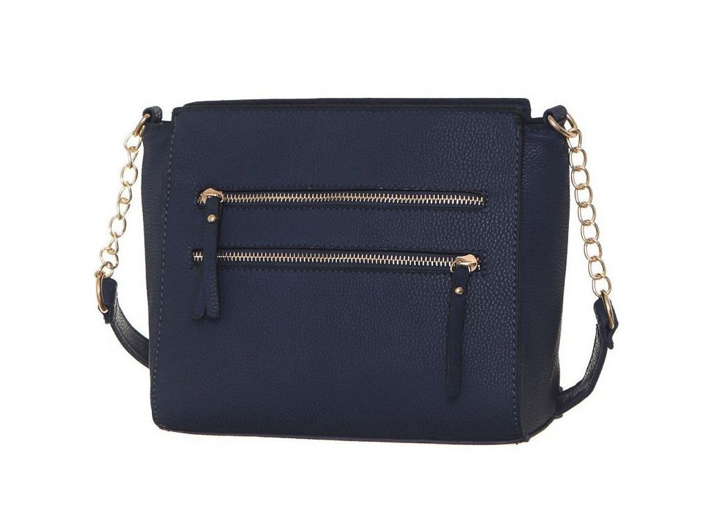Dámská kabelka je vyrobena z vysoce kvalitní eko kůže. Vnitřní část tvoří podšívka z polyesterové vlny. Tato stylová tmavě modrá kabelka je elegantní a díky minimu zdobení nadčasová. Vejde se do ní to nejdůležitější (mobilní telefon, peněženka, klíče) a další drobnosti. Má jeden hlavní úložný prostor uzavíratelný na zip, vybavený 2 vnitřními kapsami, z nichž jedna je na zip. Má další 2 malé vnější kapsy, zdobené zlatými zipy s dlouhými úchyty. Řetízky na popruhu dodávají kabelce osobitý vzhled. Tuto kabelku si zamilujete a stane se Vaším každodenním společníkem ve dnech, kdy postačí mít sebou pouze ty nejdůležitější věci. Využijete ji nejen na pochůzky po městě, ale i na rande či do divadla nebo na společenskou večeři.