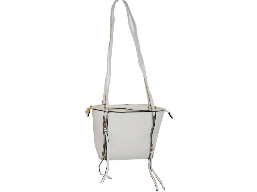 Dámská kabelka je vyrobena z vysoce kvalitní a pevné eko kůže. Vnitřní část tvoří podšívka z polyesterové vlny. Tato stylová bílá kabelka je praktická a prostorná. Vejde se do ní to nejdůležitější (mobilní telefon, peněženka, klíče) plus nějaké ty drobnosti. Má jeden hlavní úložný prostor se zapínáním na zip. Je vybavena jednou vnitřní kapsou se zipem. Na přední straně zdobí kabelku dva zipy s třásněmi. Nosí se pohodlně díky dlouhým rukojetím, které umožňují nošení v ruce i přes rameno. Zdobí ji zlaté kování, které dodává kabelce osobitý vzhled. Tuto kabelku si zamilujete a stane se Vaším každodenním společníkem ve dnech, kdy postačí mít sebou pouze ty nejdůležitější věci. Je vhodná na cesty do práce nebo do společnosti. Rozměry tašky jsou 21 x 30 x 10 cm.
