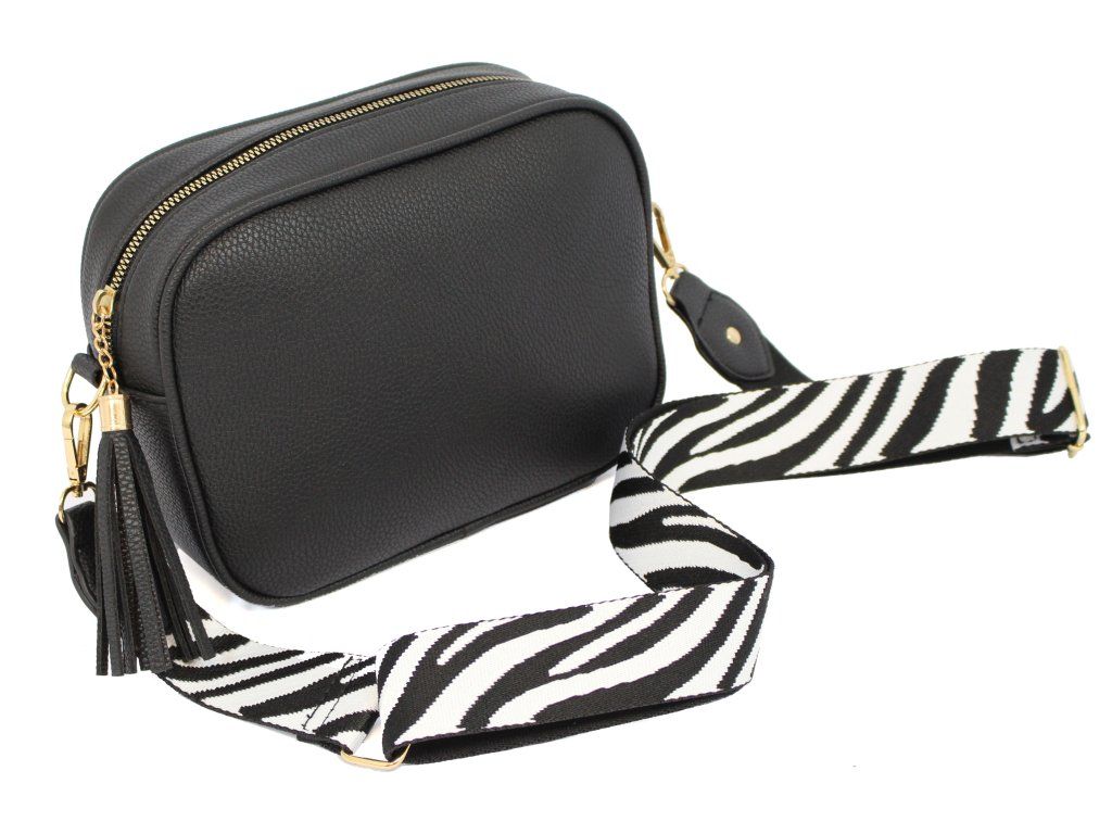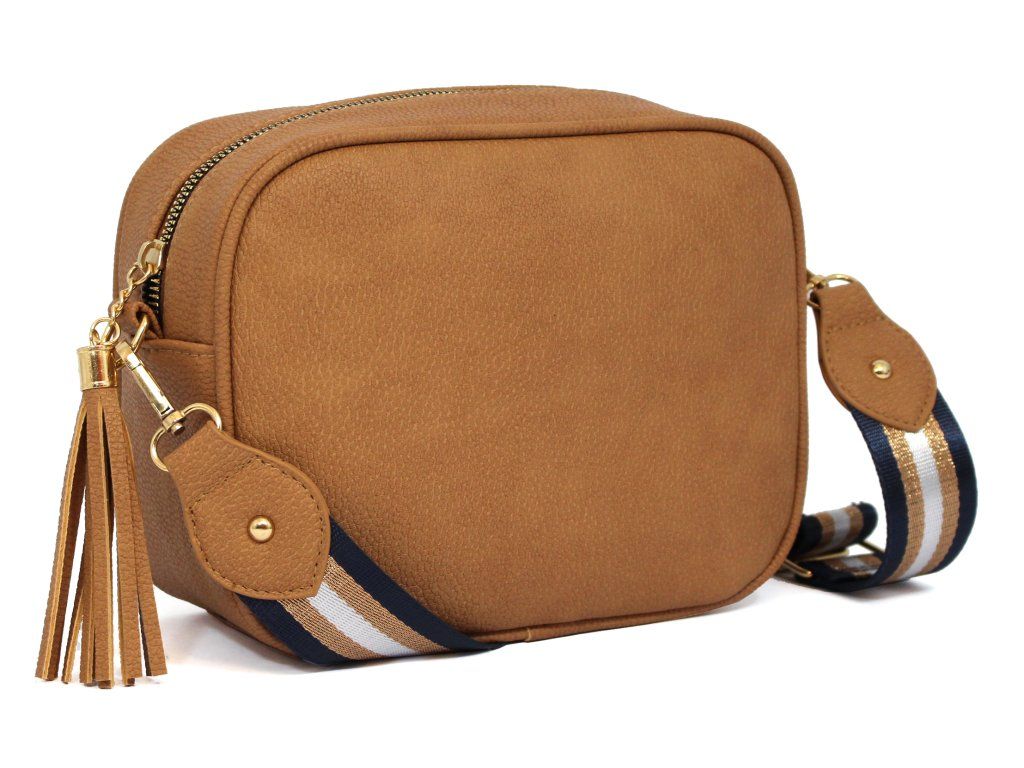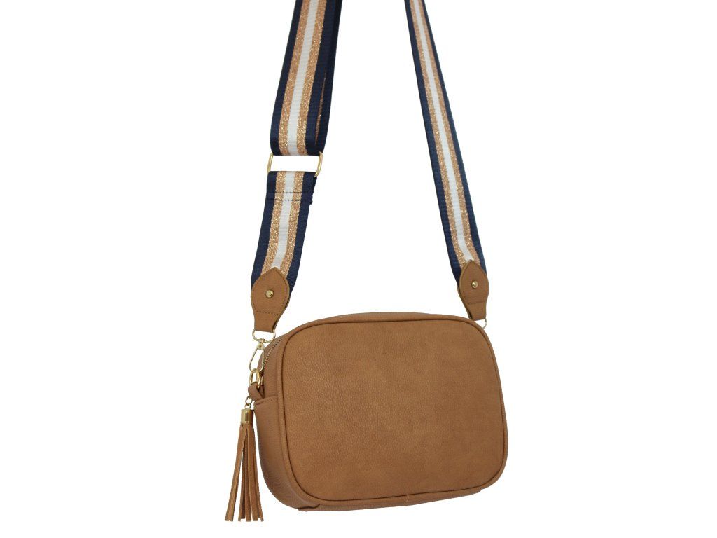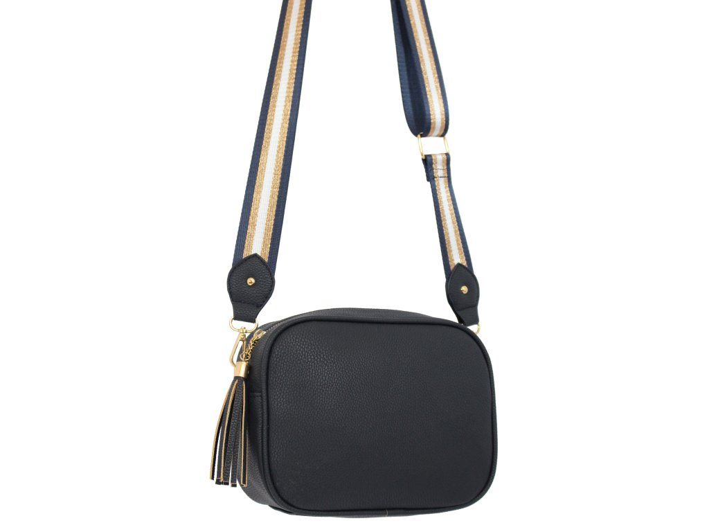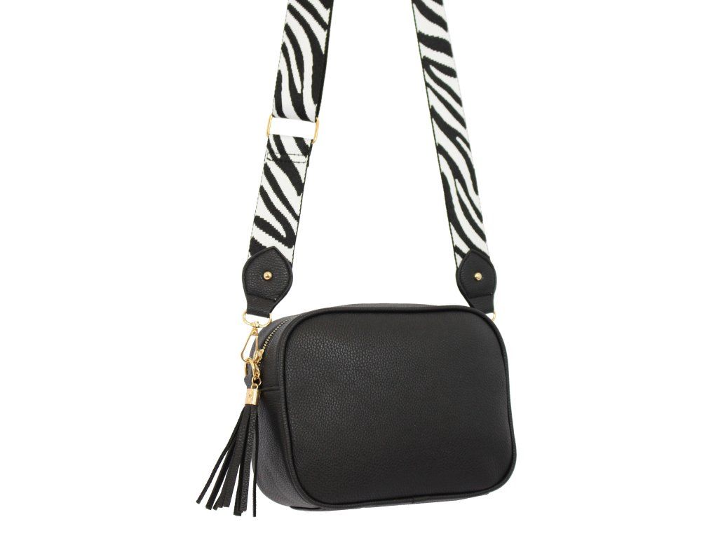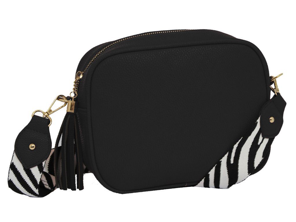 Elegantní dámská kabelka je vyrobena z vysoce kvalitní eko kůže. Vnitřní část tvoří podšívka z polyesterové vlny. Tato malá sportovně elegantní kabelka má jeden hlavní úložný prostor se zapínáním na zip. Je vybavena dvěma vnitřními kapsami, z nichž jedna je se zipem. Je praktická a vejde se do ní to nejdůležitější (mobilní telefon, peněženka, klíče) plus nějaké ty drobnosti. Kabelka se pohodlně nosí kross díky popruhu s regulací. Zdobí ji třásně a zlaté kování, které dodává kabelce osobitý vzhled. Tuto tašku si zamilujete a stane se Vaším každodenním společníkem ve dnech, kdy postačí mít sebou pouze ty nejdůležitější věci. Je vhodná na cesty do práce, do města nebo na párty či výlety.