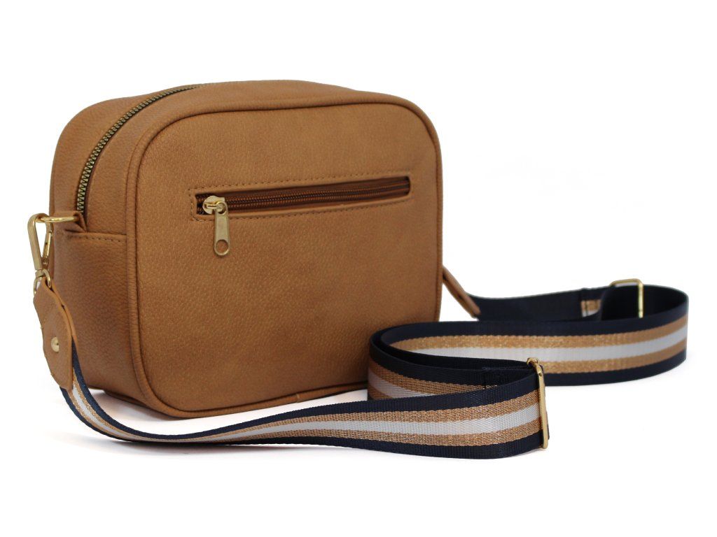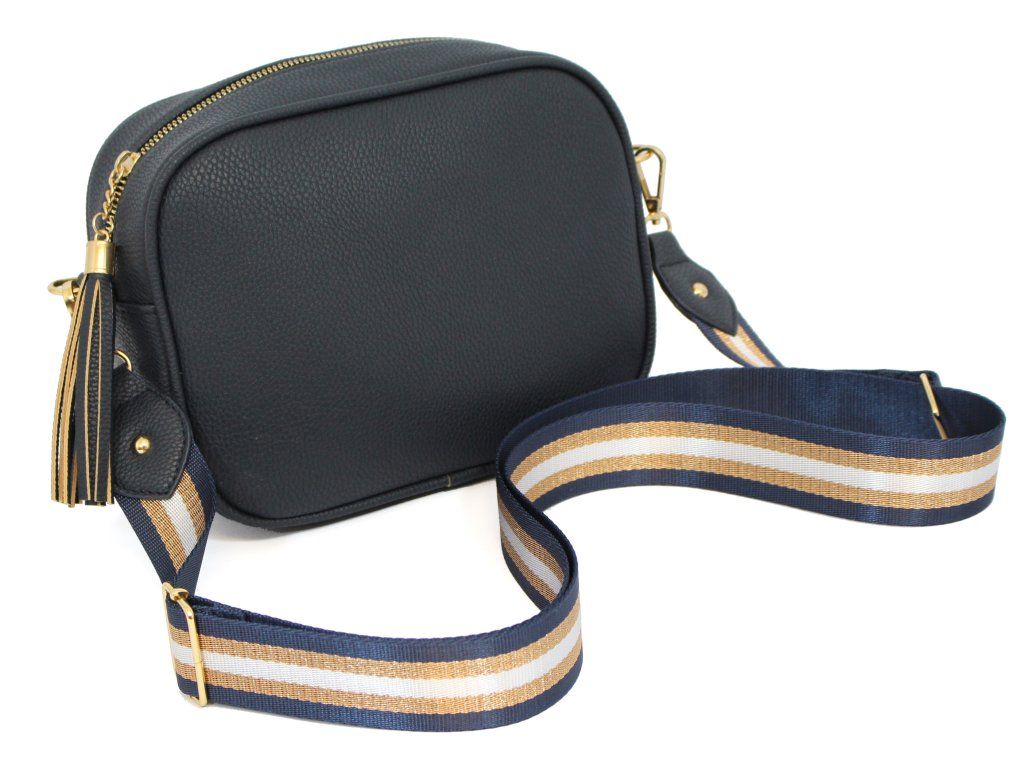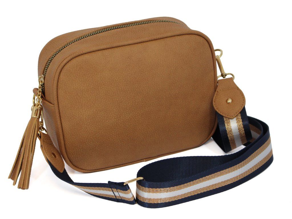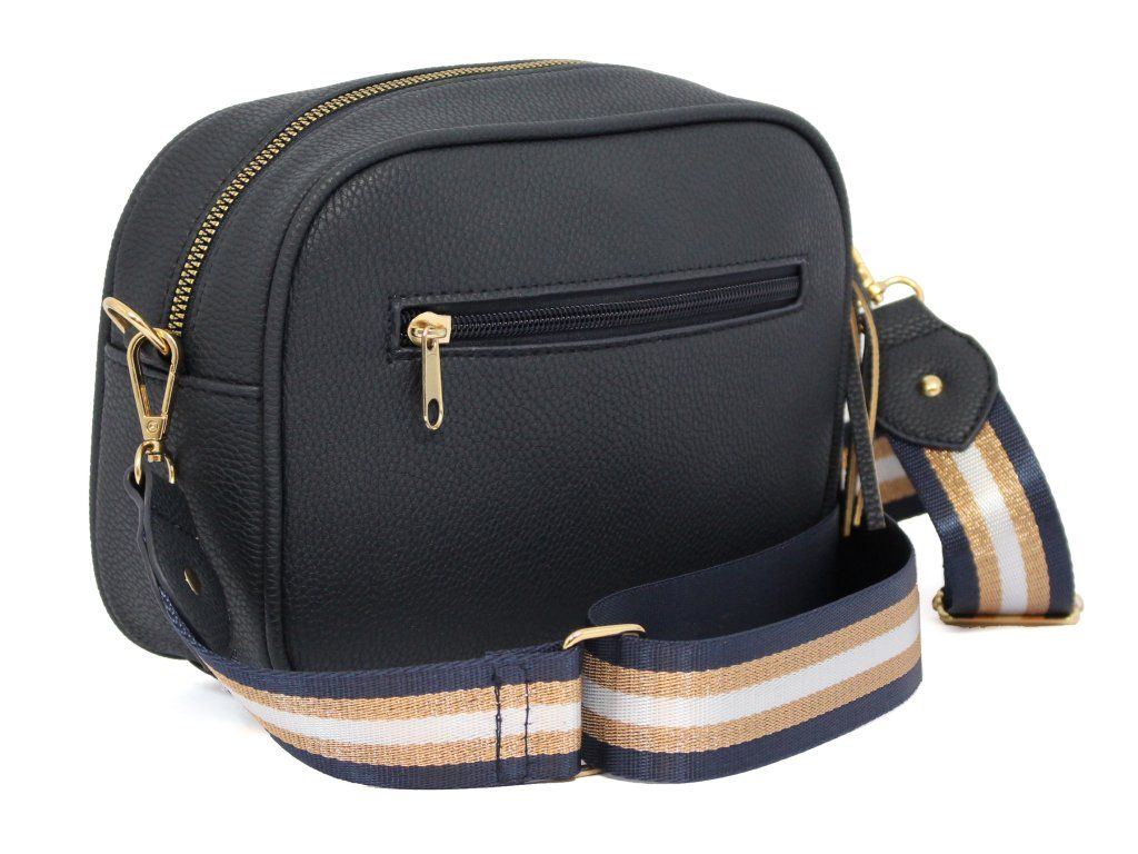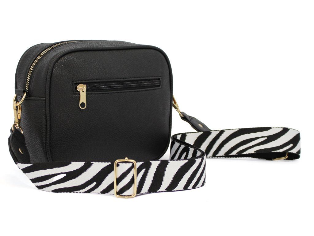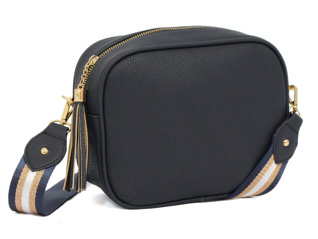 Elegantní dámská kabelka je vyrobena z vysoce kvalitní eko kůže. Vnitřní část tvoří podšívka z polyesterové vlny. Tato malá sportovně elegantní kabelka má jeden hlavní úložný prostor se zapínáním na zip. Je vybavena dvěma vnitřními kapsami, z nichž jedna je se zipem. Je praktická a vejde se do ní to nejdůležitější (mobilní telefon, peněženka, klíče) plus nějaké ty drobnosti. Kabelka se pohodlně nosí kross díky popruhu s regulací. Zdobí ji třásně a zlaté kování, které dodává kabelce osobitý vzhled. Tuto tašku si zamilujete a stane se Vaším každodenním společníkem ve dnech, kdy postačí mít sebou pouze ty nejdůležitější věci. Je vhodná na cesty do práce, do města nebo na párty či výlety.