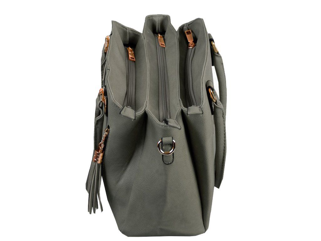 Dámská kabelka z kvalitní ekologické kůže. Tato kabelka má tři hlavní komory, všechny se zavírají na zip.