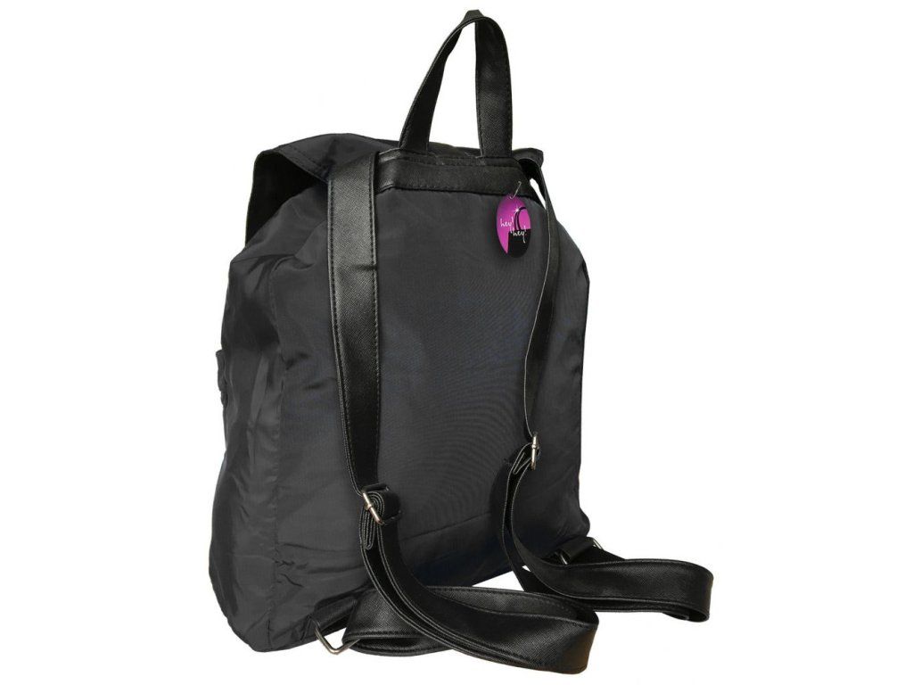 Dámský batoh je vyrobený z vysoce kvalitního, pevného materiálu. Vnitřní část tvoří podšívka z polyesterové vlny. Tento černý batoh je praktický. Vejde se do něho to nejdůležitější (mobilní telefon, peněženka, klíče) plus nějaké ty drobnosti. Má jeden hlavní úložný prostor uzavíratelný na šňůrku a klopu s přezkou. Na přední straně jsou umístěny dvě praktické kapsy, do kterých si můžete uložit věci, které chcete mít stále po ruce. Skvěle se nosí díky nastavitelným ramenním popruhům. Nesmí chybět ani praktické poutko na zavěšení batohu. Batoh se hodí na běžné nošení nebo třeba na výlety. Rozměry batohu jsou 38 x 32 - 42 x 14 cm.Doplňkové parametry