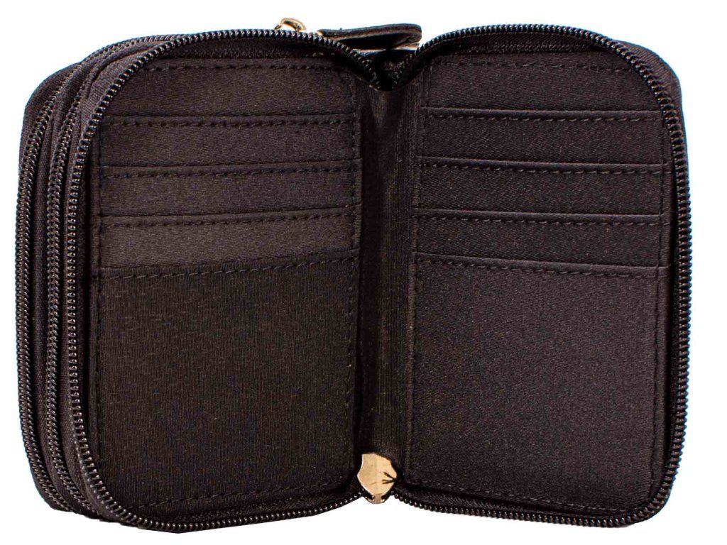 Kompaktní, malá dámská peněženka pro každou stylovou ženu. Pojme vše, bez čeho se neobejdete. Tato peněženka je velmi praktická, s mnoha přihrádkami, mince i bankovky máte po ruce snadným otevřením zipu, karty snadno roztřídíte a můžete použít bez hledání, ve třech samostatných oddílech.