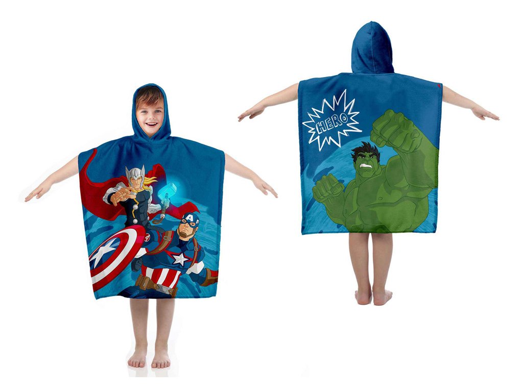 Dětské Disney pončo Avengers Kapitán Amerika a Thor, je vyrobeno ze 100% bavlny. Vaše děti budou okamžitě v teple, když se oblečou do savého froté ponča s kapucí, které nahradí osušku. Na předním díle ponča je animovaná postavička Kapitána Ameriky a Thora a na zadním díle je hrdina Hulk. Thor je Odinův syn, Bůh hromů z planety Asgard. Hulk je vědec Robert Bruce Banner, který po vystavení značnému množství gama-záření zmutoval v tuto obří zelenou nestvůru. Kapitán Amerika byl za druhé světové války vybrán k experimentu znovuzrození, přežil hibernaci v ledu až do naší doby i se superschopnostmi.