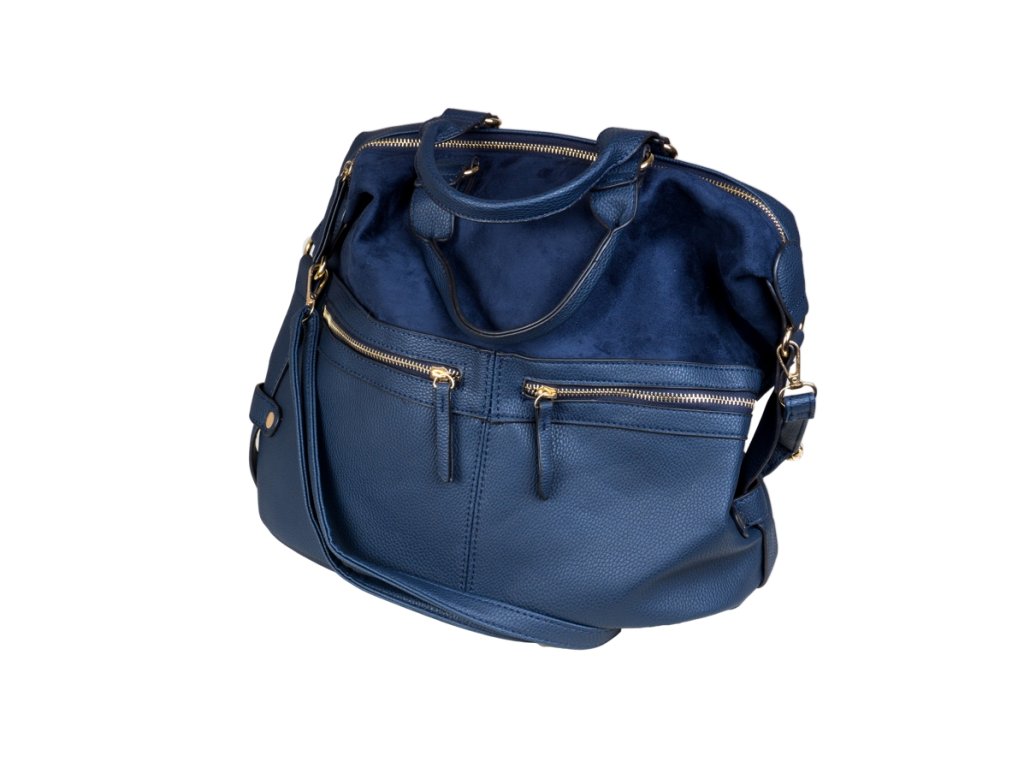 Dámská kabelka je vyrobena z kvalitního a pevného materiálu. Vnitřní část tvoří podšívka z polyesterové vlny. Tato modrá stylová kabelka je praktická a vejde se do ní to nejdůležitější (mobilní telefon, peněženka, klíče) plus nějaké ty drobnosti. Má jeden hlavní úložný prostor se zapínáním na zip vybavené třemi vnitřními kapsami, z nichž jedna se zapíná na zip. Na přední straně kabelky jsou umístěny dvě vnější kapsy se zipem, do kterých si můžete vložit věci, které chcete mít hned po ruce. Kabelka se pohodlně nosí díky nastavitelnému popruhu, který se snadno odnímá. Praktické rukojeti umožňují nošení kabelky v ruce. Kabelku zdobí zlaté kování. Tuto kabelku si zamilujete a stane se Vaším každodenním společníkem ve dnech, kdy postačí mít sebou pouze ty nejdůležitější věci. Je vhodná na vesty do města nebo do práce. Rozměry tašky jsou 36x33x18 cm.Doplňkové parametry