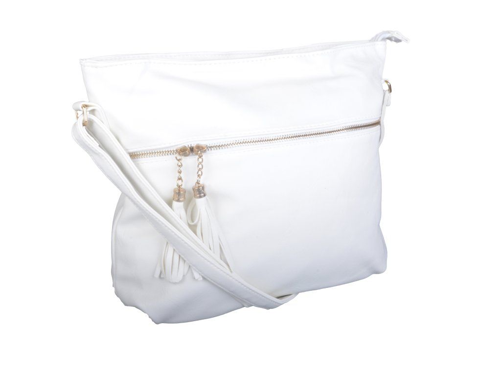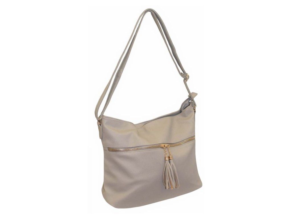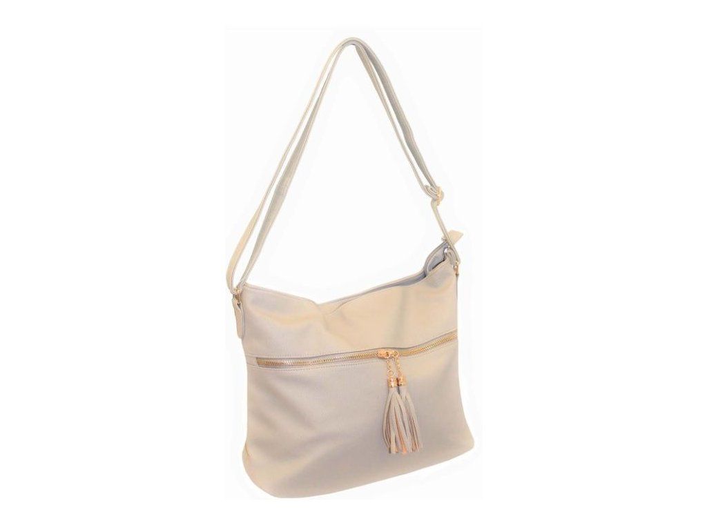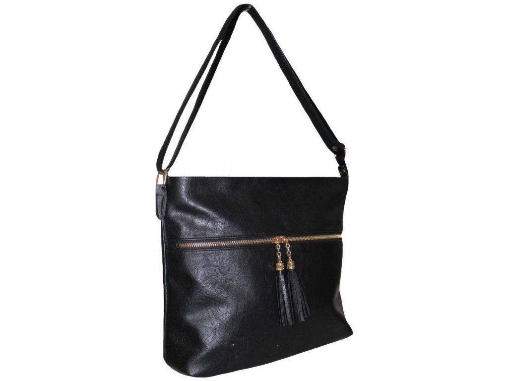 Elegantní městská kabelka je vyrobena z vysoce kvalitní eko kůže se strukturou. Vnitřní část tvoří podšívka z polyesteru. Tato stylová kabelka je elegantní i praktická. Vejde se do ní to nejdůležitější (mobilní telefon, peněženka, klíče) a třeba svetřík či drobný nákup. Má jeden hlavní úložný prostor vybavený 3 kapsami, z nichž jedna má zapínání na zip. Uzavírání celé tašky je na zip. Přední stranu kabelky na kapse zdobí zip a střapce z eko kůže. Nosí se pohodlně díky nastavitelnému popruhu. Tuto kabelku si zamilujete a stane se Vaším každodenním společníkem ve dnech, kdy máte shon a cestou z práce potřebujete koupit ještě nějaké drobnosti. Rozměry tašky jsou cca: v 26 x š 35 x h 10 cm.