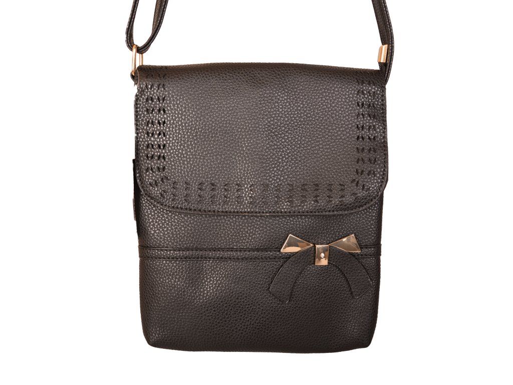 Kabelka je z měkké umělé kůže s jemnou plastickou strukturou. Hlavní nedělený prostor se zavírá zipem a klopou na magnetický patent. Na zadní straně najdete ještě jednu vloženou kapsu na věci, co chcete mít oddělené, uzavíratelnou zipem. Kabelka je krásně dozdobená raženými ornamenty na klopě a v dolní třetině kabelky je asymetricky umístěná kovová mašle s kůží, doplněná prošívaným proužkem po celé šířce kabelky.