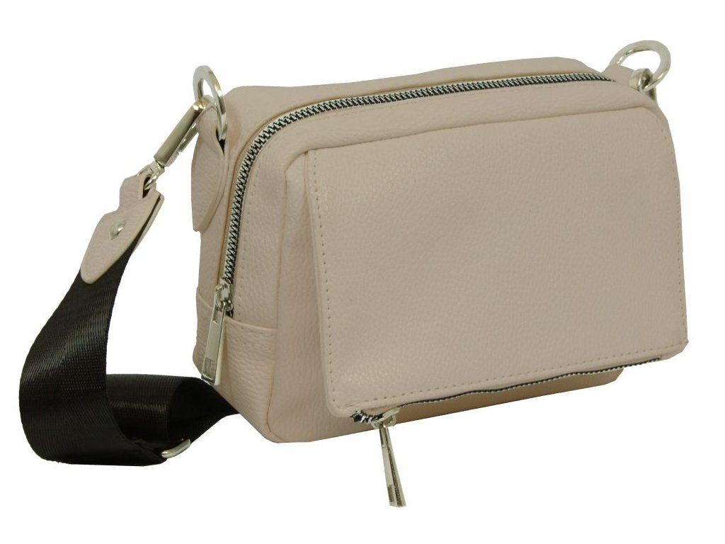 Dámská sportovně elegantní kompaktní kabelka je vyrobena z vysoce kvalitní eko kůže. Vnitřní část tvoří podšívka z polyesteru a 1 malá kapsa v podšívce, zvenku je klopová kapsa na zip, která se otáčí ve švu nahoru. Po odepnutí popruhu je možné nosit jako psaníčko. Do kabelky se vejde malá peněženka, mobil, doklady, kapesníčky. Vhodná do kina, na párty, na rande.