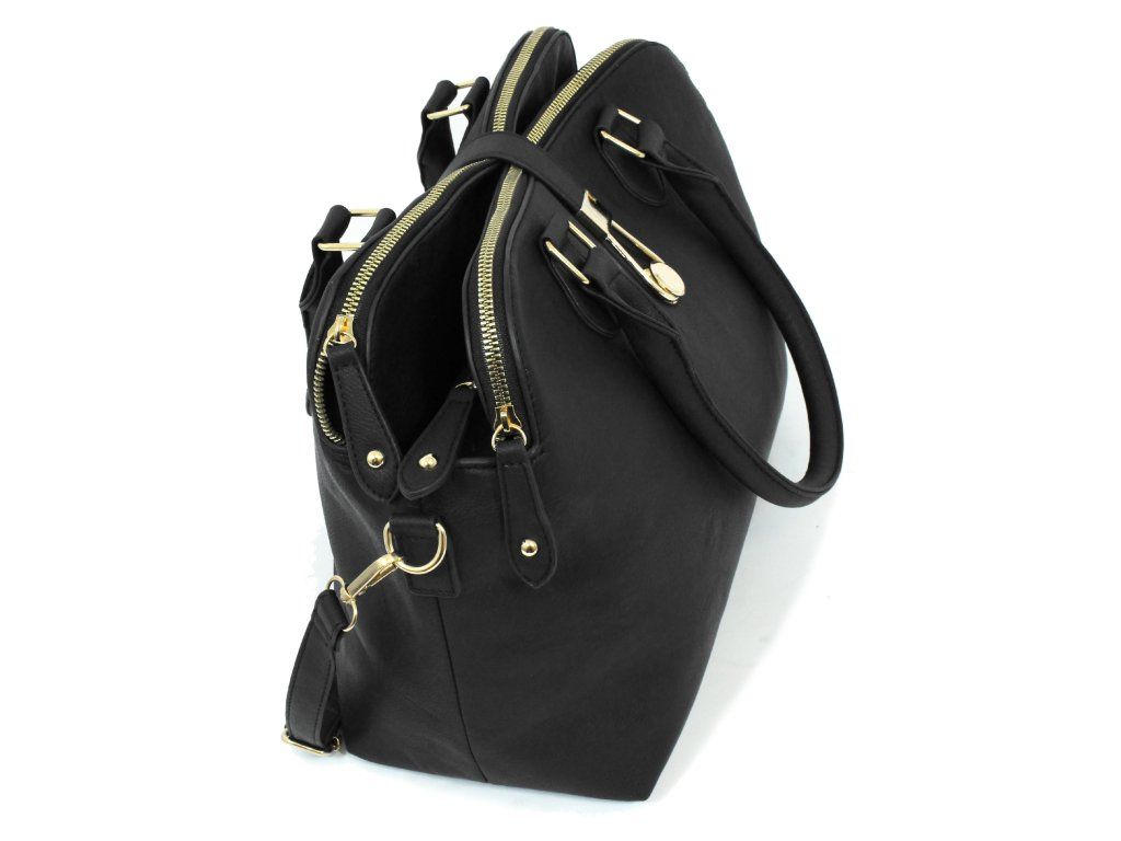 Dámská kabelka JBFB 111 je vyrobena z vysoce kvalitní eko kůže, která zajišťuje její pevnost a elegantní vzhled. Vnitřní část je opatřena podšívkou z 100% polyesteru, což přispívá k odolnosti a snadné údržbě kabelky. S rozměry 27x44x13 cm je tato stylová černá kabelka praktická a dostatečně prostorná, aby pojmula všechny vaše nezbytnosti, jako je mobilní telefon, peněženka, klíče a další drobnosti.
