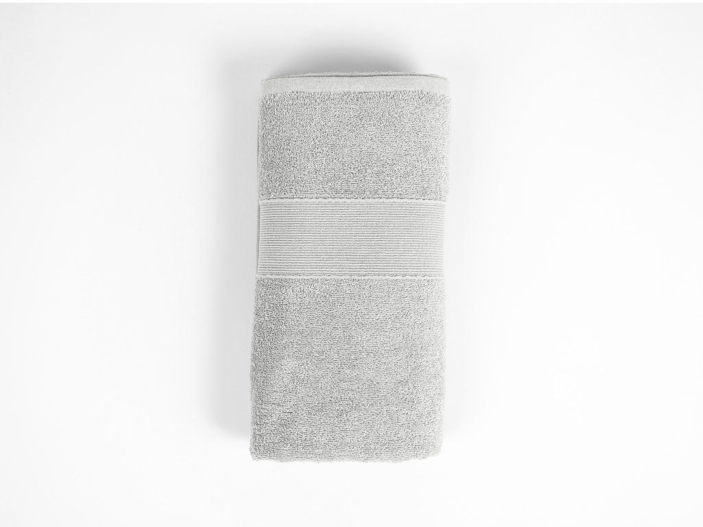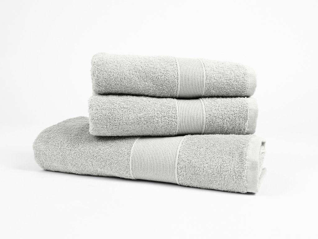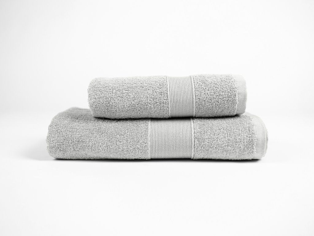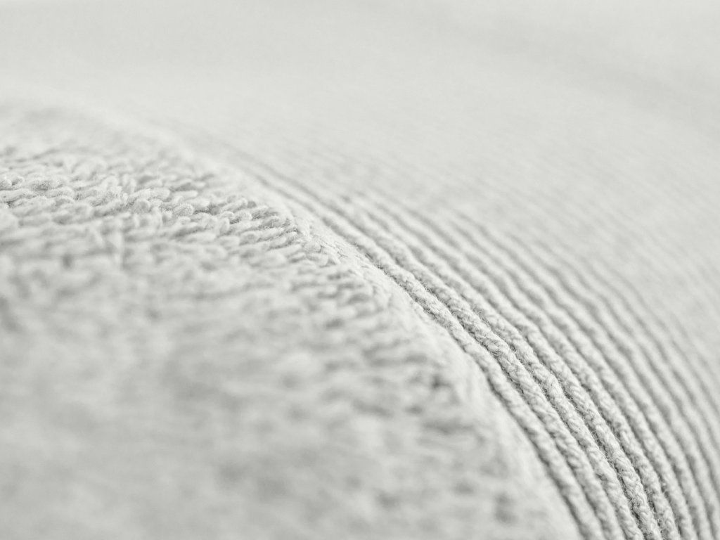 Vysoká gramáž garantuje dlouhou životnost, pevnost a tvarovou stálost i při pravidelném praní. Světle šedá osuška je esteticky zvýrazněna širokým ozdobným pruhem uprostřed, tvořeným svislým jemným žebrováním, které dodává elegantní a čistý vzhled.