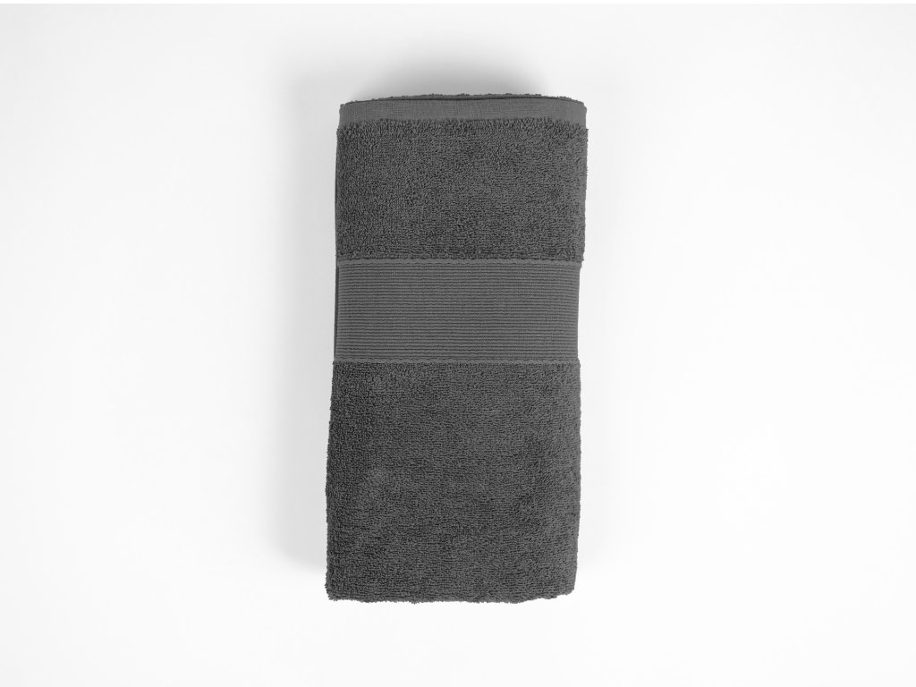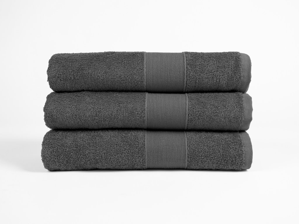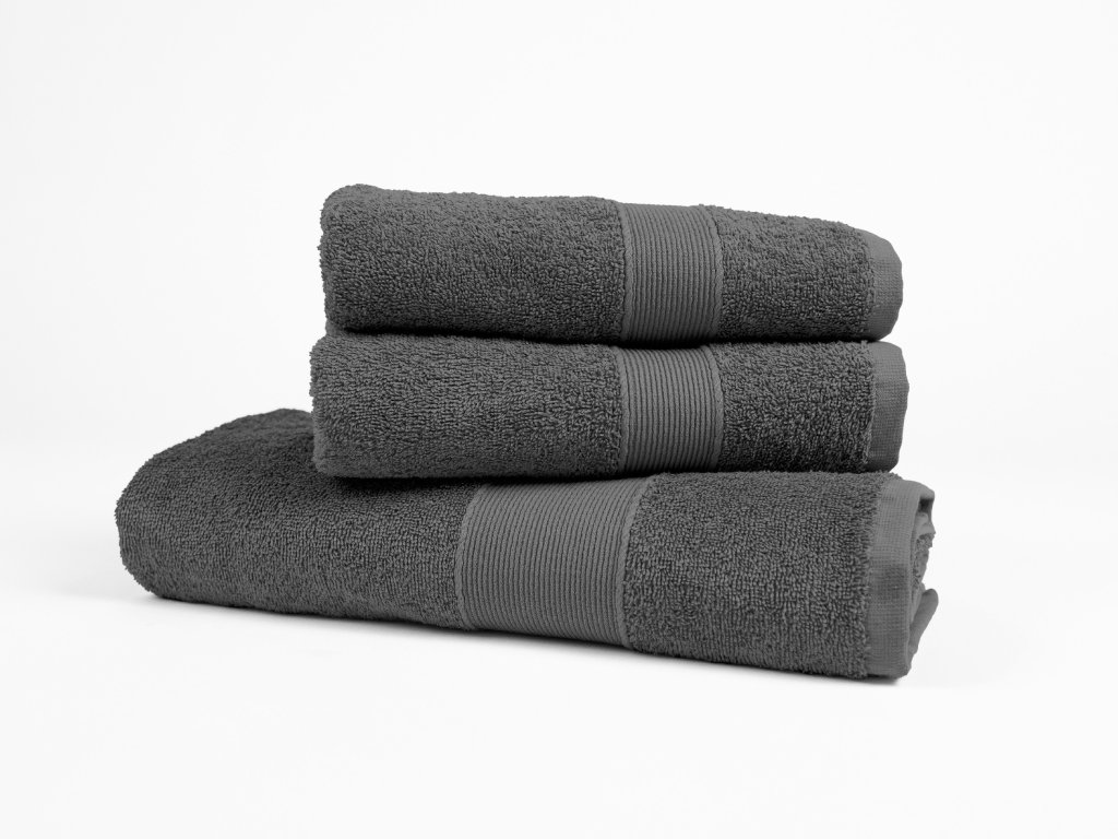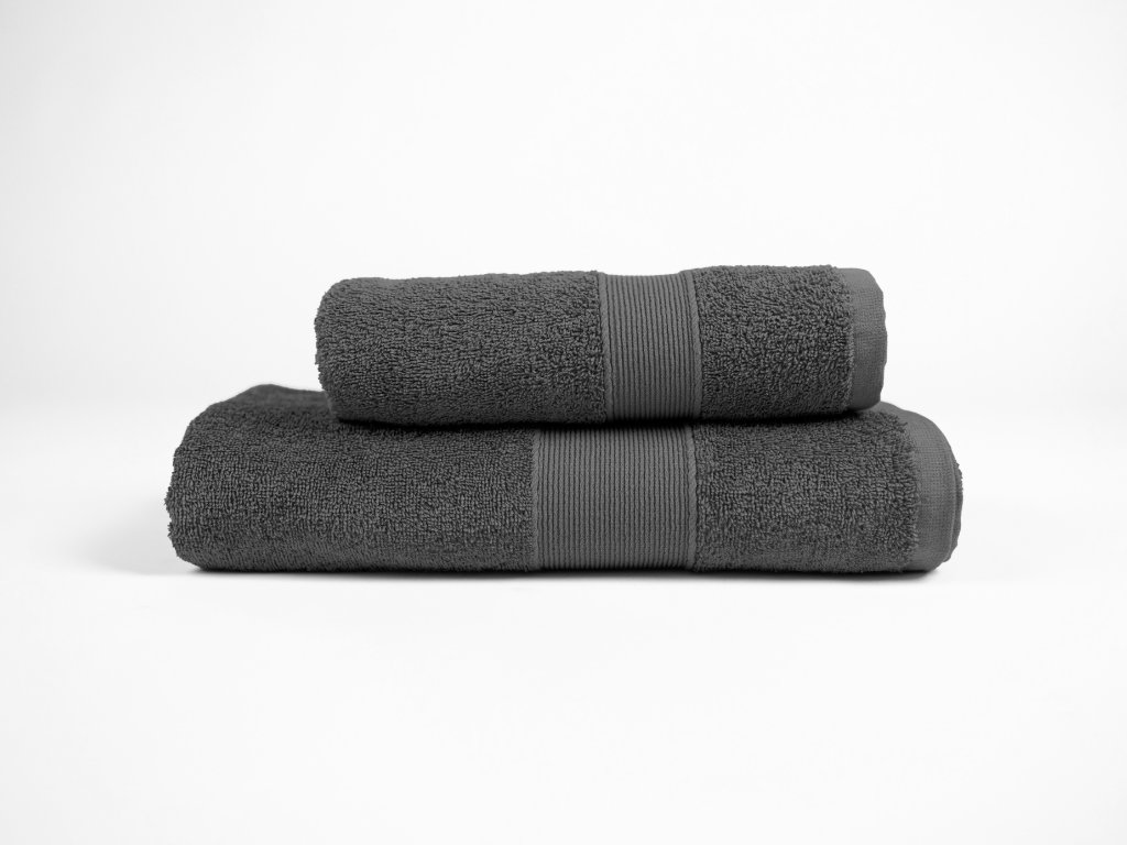 Vysoká gramáž garantuje dlouhou životnost, pevnost a tvarovou stálost i při pravidelném praní. Tmavě šedá osuška je esteticky zvýrazněna širokým ozdobným pruhem uprostřed, tvořeným svislým jemným žebrováním, které dodává elegantní a čistý vzhled.