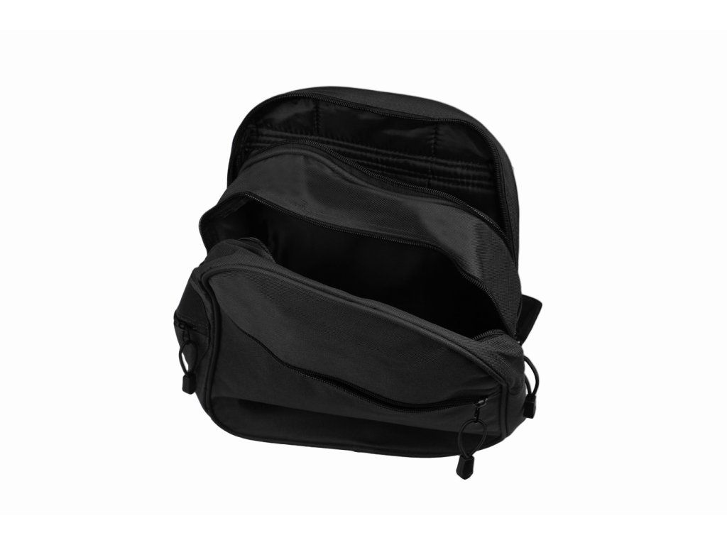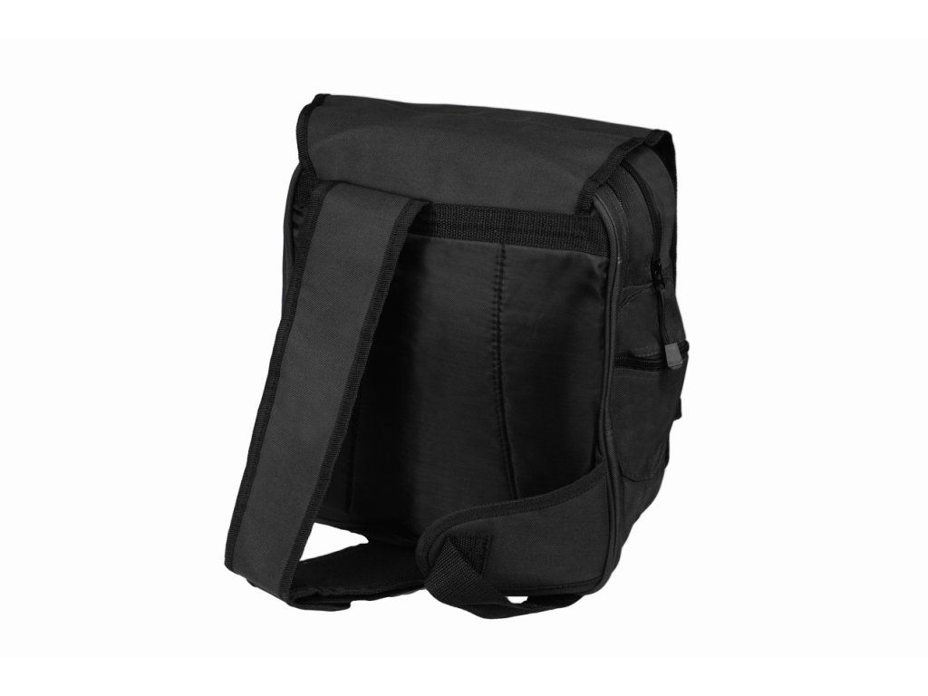 Pánský batoh je vyrobený z vysoce kvalitního, pevného a voděodolného materiálu. Vnitřní část tvoří podšívka z polyesterové vlny. Tento černý batoh je praktický. Vejde se do něho to nejdůležitější (mobilní telefon, peněženka, klíče) plus nějaké ty drobnosti. Má dva hlavní úložné prostory uzavíratelné na zip. Na přední straně se nachází jedna prostorná kapsa na běžné věci, které potřebujete mít po ruce. Kapsa je uzavřena zipem. Na boční straně je umístěna jedna malá kapsička se zipem. Batoh se zavírá pomocí klopy na suchý zip. Skvěle se nosí díky nastavitelnému širokému ramennímu popruhu, který se zapíná na klips. Má polstrovaná záda. Batůžek se hodí na běžné nošení nebo třeba na výlety. Rozměry batohu jsou 23x30x14 cm.