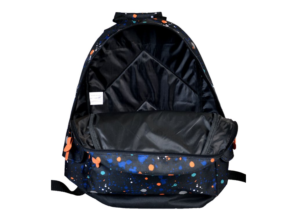 Batoh má jeden hlavní úložný prostor uzavíratelný dvojitým zipem. Na přední straně se nachází jedna prostorná kapsa na věci, které potřebujete mít po ruce. Kapsa je uzavřena zipem. Na bocích jsou umístěny malé kapsičky. Batoh má polstrovaná záda pro pohodlnější nošení. Skvěle se nosí díky nastavitelným polstrovaným ramenním popruhům. Nechybí praktické poutko na zavěšení či přenesení v ruce. Batoh se hodí i na běžné nošení či pochůzky. Rozměry batohu jsou 29 x 19 x 44 cm.