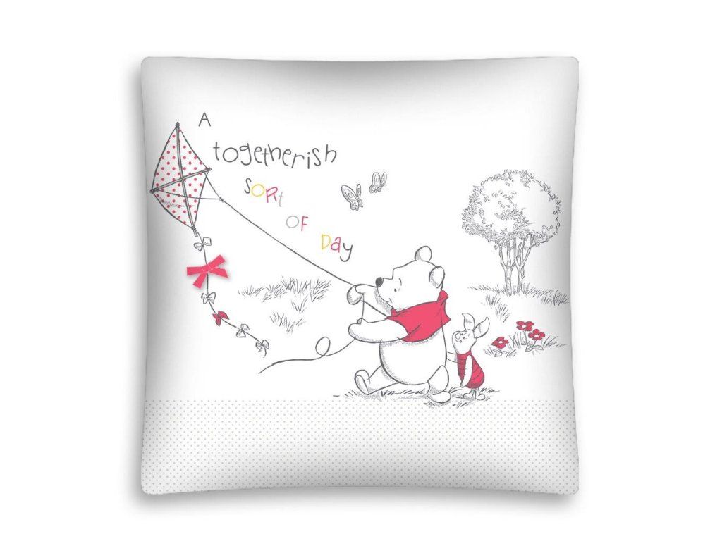 Medvídek Pú s Prasátkem pouštějí draka na louce.