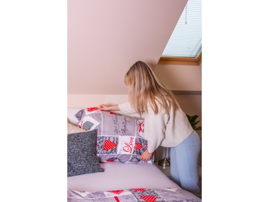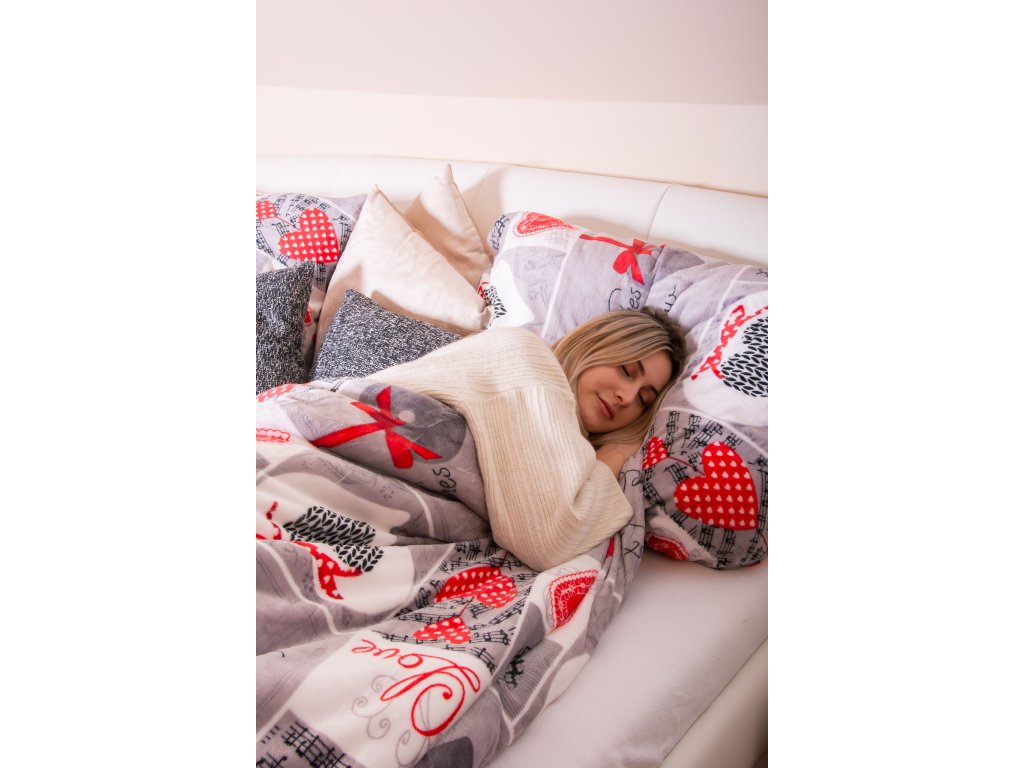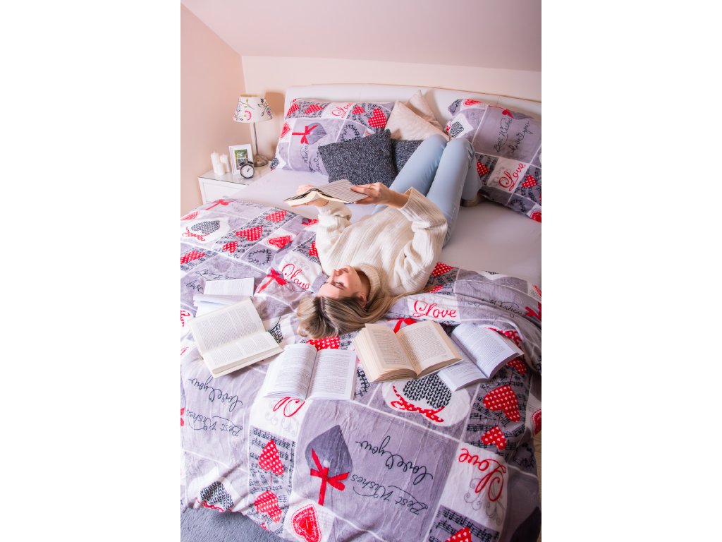 Elegantní mikroplyšové povlečení Wish na jednolůžko s jemným vzorem černých a červených srdíček na šedém podkladu. Povlečení je vyrobeno ze 100% polyesteru. Předností tohoto materiálu je, že úžasně hřeje, je velmi teplý i přesto, že je lehký. Ve velmi chladných prostorech či dnech zkombinujte povlečení s mikroplyšovým prostěradlem pro maximální tepelný komfort. V letních měsících můžete použít povlak jako letní přikrývku s jersey prostěradlem. Vysoká kvalita zpracování zajišťuje stálost barev a rozměrů. Toto šedé povlečení ve standardní velikosti na jednolůžko obsahuje 1x povlak na polštář o velikosti 70x90 cm a 1x povlak na velkou postel o velikosti 140x200 cm. Klasické zapínání na zip.
