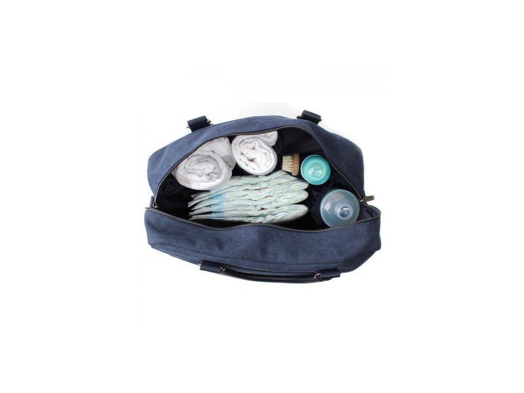 Taška obsahuje nejen množství kapes, ale také přebalovací podložku a termo pouzdro na láhev. Popruh tašky je nastavitelný, je tedy možné nosit tuto tašku přes rameno jako kabelku, nebo ji zavěsit na rukojeť kočárku.