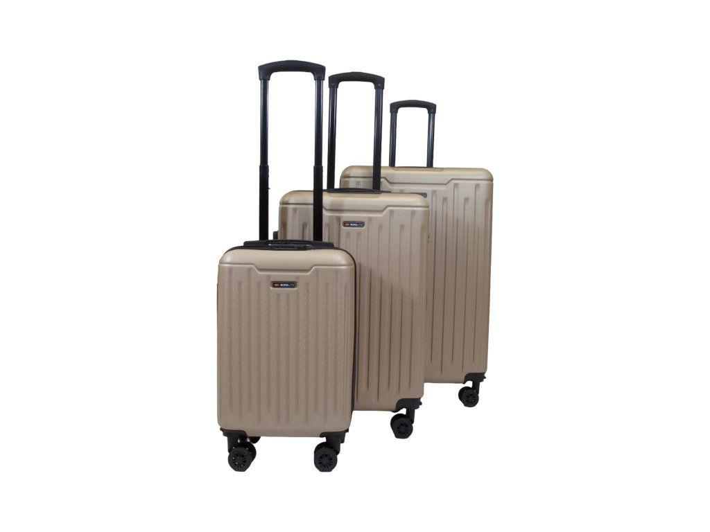 Praktická sada tří skořepinových kufrů velikostí S, M, L se kterou si nemusíte lámat hlavu při výběru kufrů pro celou rodinu. Kufr velikosti S (cabin) s rozměry 52 x 34 x 20 cm a váhou 4,6 kg. Nejmenší kufr S lze použít jako kabinové zavazadlo do letadla a využít ho tak na kratší dovolenou či pracovní cestu. Kufr velikosti M s rozměry 68 x 43 x 26 cm a váhou 7 kg. Tento kufr lze využít na cestování autem či letadlem na delší cestování. Kufr velikosti L s rozměry 78 x 51 x 32 cm a váhou 8,9 kg. Tento velký kufr je výborný na dlouhé cesty a vejde se do něho vše, co potřebujete. Tyto designové kufry obsahují jednu hlavní kapsu na zip. Dále vnitřní oddělení dvou částí kufru na zip s kapsou. Kufr disponuje vysouvací rukojetí a dvěmi vnějšími úchyty. Odolné rotační kolečka přispívají k pohodlnému pohybu s kufrem. Zabezpečit ho lze moderním integrovaným zámkem proti krádeži.