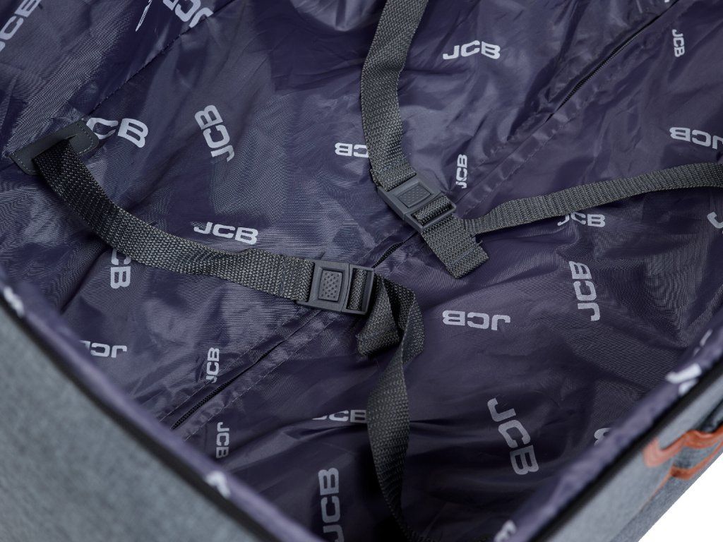 Interiér má podšívku a v dolním díle fixační pásky, v horním kapsu.