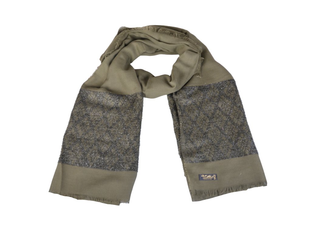 Dámský elegantní šál typu pashmina, zdobený kontrastní bordurou (šířka cca 20 cm). Je velmi lehký a hřejivý. Vhodný jako doplněk přes šaty do společnosti nebo jako ozdoba ke kabátu nebo šál unosíte jen tak kolem krku. Ideální pro chladnější letní večery i běžné používání. Rozhodně by neměl chybět ve Vašem šatníku.