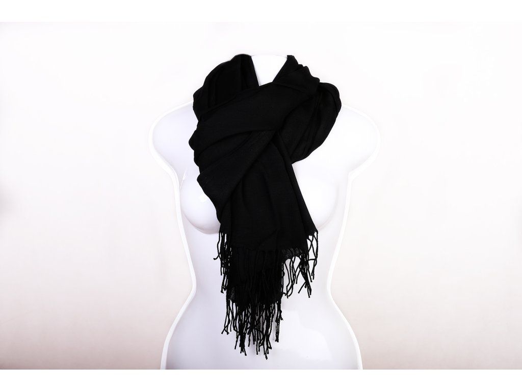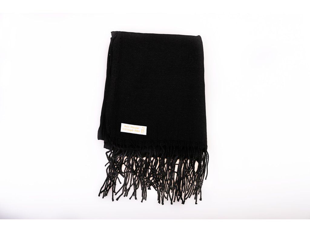 Dámský elegantní černý šál. Je velmi lehký a hřejivý. Vhodný jako doplněk přes šaty do společnosti nebo jako ozdoba ke kabátu. Ideální pro chladnější letní večery i běžné používání. Rozhodně by neměl chybět ve Vašem šatníku. Rozměry šály jsou 165 x 65 cm bez třásní (třásně cca 8 cm).Doplňkové parametry