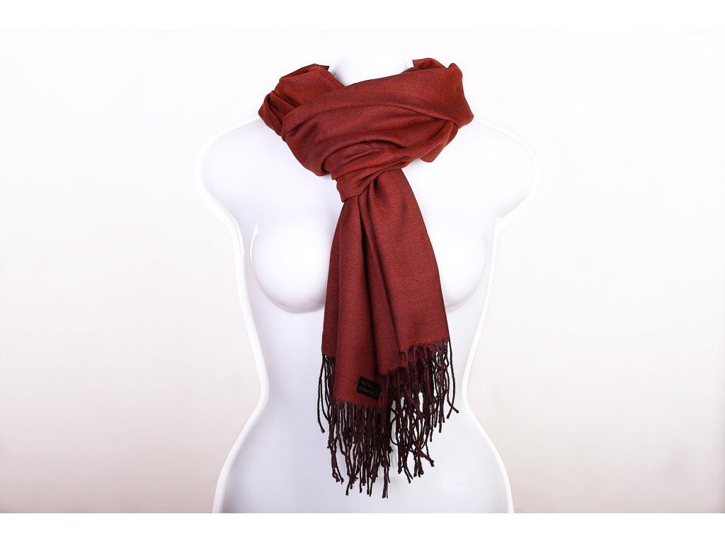 Dámský elegantní cihlový šál. Je velmi lehký a hřejivý. Vhodný jako doplněk přes šaty do společnosti nebo jako ozdoba ke kabátu. Ideální pro chladnější letní večery i běžné používání. Rozhodně by neměl chybět ve Vašem šatníku. Rozměry šály jsou 165 x 65 cm bez třásní (třásně cca 8 cm).Doplňkové parametry