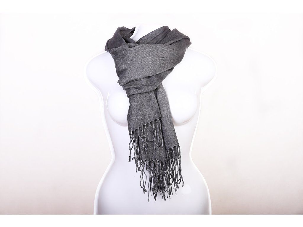 Dámský elegantní tmavě šedý šál. Je velmi lehký a hřejivý. Vhodný jako doplněk přes šaty do společnosti nebo jako ozdoba ke kabátu. Ideální pro chladnější letní večery i běžné používání. Rozhodně by neměl chybět ve Vašem šatníku. Rozměry šály jsou 165 x 65 cm bez třásní (třásně cca 8 cm).Doplňkové parametry
