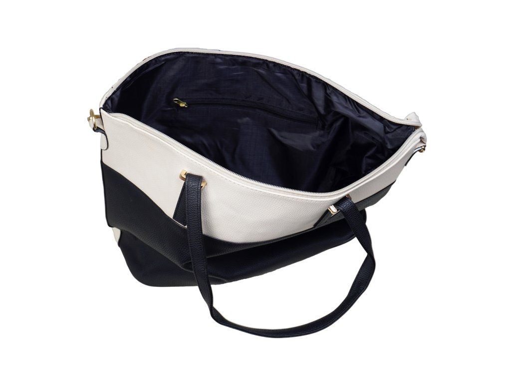 Dámská kabelka přes rameno je vyrobena z vysoce kvalitní eko kůže. Vnitřní část tvoří podšívka z polyesterové vlny. Tato stylová kabelka v barvě champagne a černé je praktická. Vejde se do ní to nejdůležitější (mobilní telefon, peněženka, klíče) plus nějaké ty drobnosti. Má jeden hlavní úložný prostor, který se zavírá na zip. Je vybavená třemi vnitřními kapsami, z toho jedna je uzavřena pomocí zipu. Zdobí ji zlaté kování, které dodává kabelce osobitý vzhled. Nosí se pohodlně díky nastavitelnému popruhu, který se snadno odnímá. Má dvě rukojeti, takže ji lze nosit v ruce. Tuto kabelku si zamilujete a stane se Vaším každodenním společníkem ve dnech, kdy postačí mít sebou pouze ty nejdůležitější věci. Je vhodná na cesty do práce, do města nebo na výlety. Rozměry tašky jsou 23x26x10 cm.Doplňkové parametry