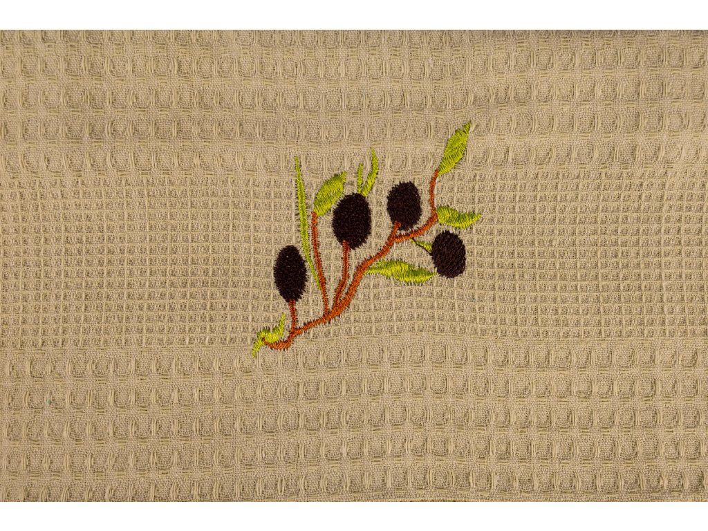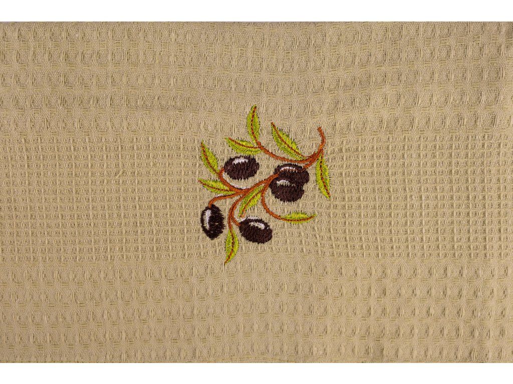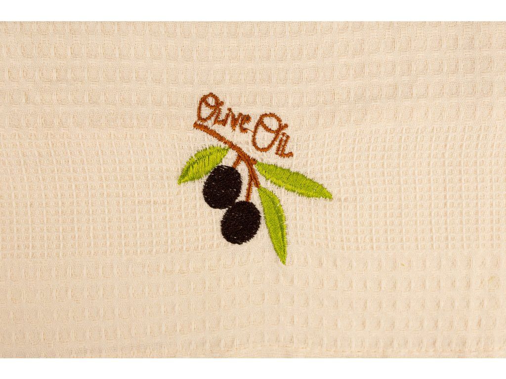 Dárková sada vaflových utěrek 6 ks Oliva, je vyrobena ze 100% bavlny. Vaflový vzor je textilie s vazbou plastického povrchu a jeho charakteristickým jamkováním, kde hustě provázaná místa ve tkanině tvoří prohloubeniny. Utěrky z tohoto materiálu mají zvýšenou savost. Kuchyňské utěrky jsou v balení ve třech barvách, a to v khaki, zelené rákosové a bílé. Na každé z nich jsou vyšité olivy a na jedné z nich je nápis Olive Oil.. Rozměry každé utěrky jsou 40 x 60 cm. Toto balení může být i krásným dárkem, který potěší ne jednu hospodyňku. V naší nabídce najdete kromě vaflových utěrek také malé ručníčky do kuchyně a koupelny s rozmanitými vzory, v pastelových a přírodních barvách. Utěrky perte vždy podle návodu, který je na obale a nepoužívejte prací prostředky s obsahem bělících a rozjasňujících substancí.