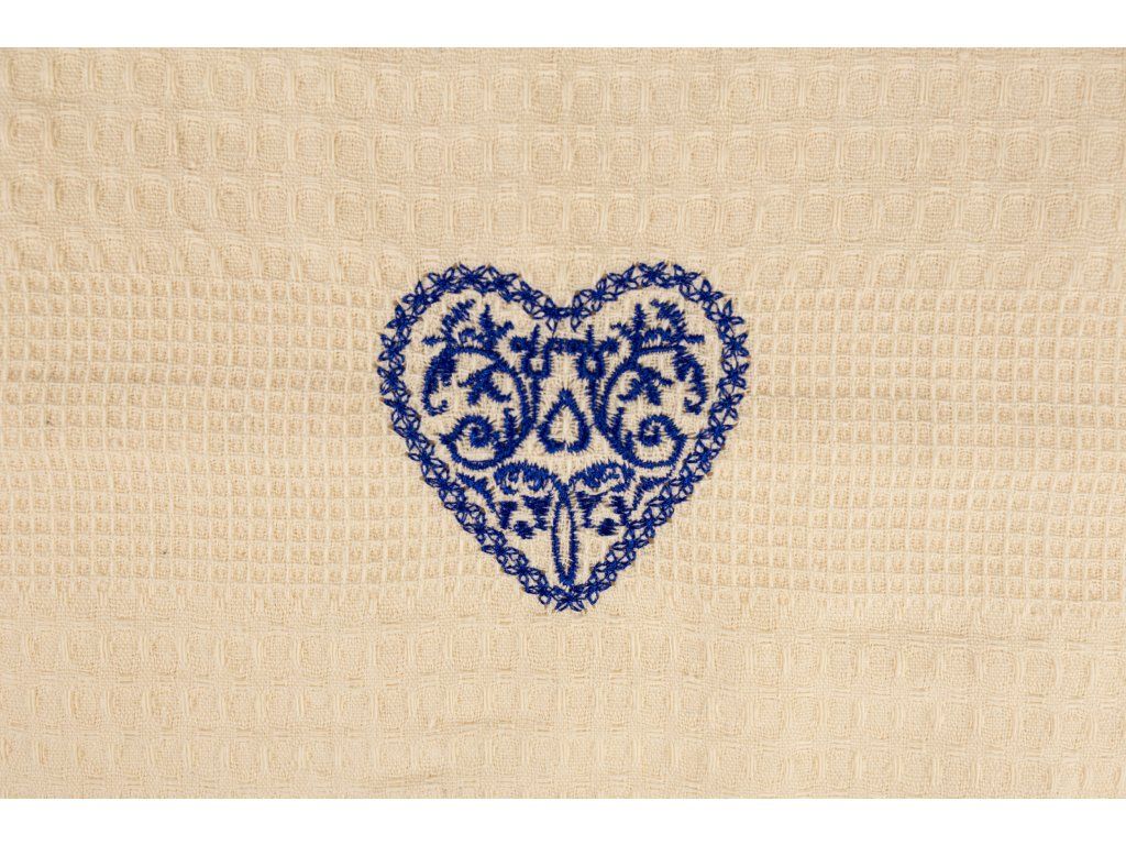 Dárková sada vaflových utěrek 6 ks Srdce, je vyrobena ze 100% bavlny. Vaflový vzor je textilie s vazbou plastického povrchu a jeho charakteristickým jamkováním, kde hustě provázaná místa ve tkanině tvoří prohloubeniny. Utěrky z tohoto materiálu mají zvýšenou savost. Kuchyňské utěrky jsou v balení ve dvou barvách, a to modré a bílé. Na každé z nich jsou vyšité, buď modré srdce s ornamenty, či květiny. Rozměry každé utěrky jsou 40 x 60 cm. Toto balení může být i krásným dárkem, který potěší ne jednu hospodyňku. V naší nabídce najdete kromě vaflových utěrek také malé ručníčky do kuchyně a koupelny s rozmanitými vzory, v pastelových a přírodních barvách. Utěrky perte vždy podle návodu, který je na obale a nepoužívejte prací prostředky s obsahem bělících a rozjasňujících substancí.